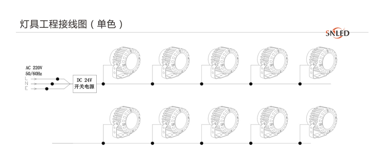 1、燈具DC24V并接不超過50/30/20/15臺,超過50/30/20/15臺請加電源輸入線;