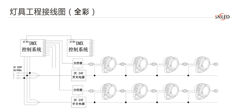 1、燈具DC24V并接不超過50/30/20/15臺,超過50/30/20/15臺請加電源輸入線;