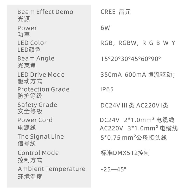 光束角:15°20°30°45°60°90°
