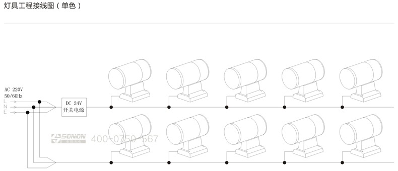 l注:燈具最大并接50臺,超過50臺請加電源輸入線。
